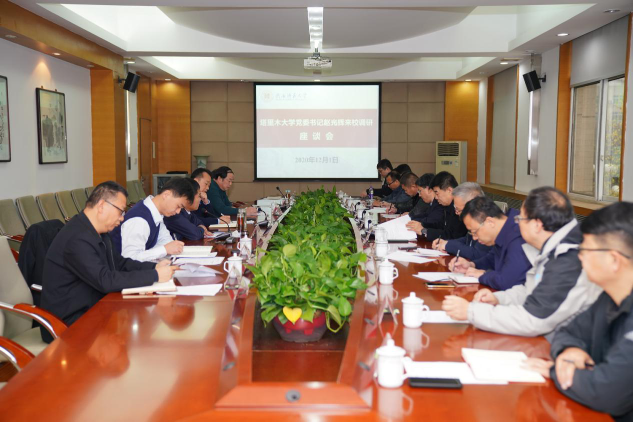 赵光辉代表塔里木大学党委对陕西师范大学的热情接待表示诚挚感谢。他介绍了学校历史沿革、办学定位和办学特色,并结合自己在塔大工作以来的切身体会,谈到塔大62年来建设发展的“三个不平凡”。他重点介绍了此次来访的目的,希望在新的历史机遇下,陕西师范大学能发挥优势资源,支持塔大在师范教育人才培养、科学研究、学科建设、师资队伍建设等方面加快发展。