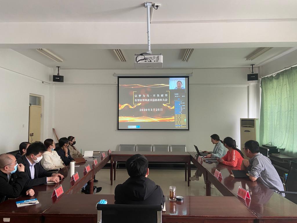 为进一步加强学风建设,深入总结、广泛宣传学风建设中的先进典型和事迹,形成全员参与、协同创新、整体推进、务求实效的学风建设工作局面,3月25日下午,石河子大学医学院(塔里木大学)分院在钉钉直播课堂上举行2019-2020学年第一学期本科专业学风建设总结表彰大会。学院领导班子成员、辅导员、班主任、教师代表及本科专业全体学生参加。会议由高妍主持。