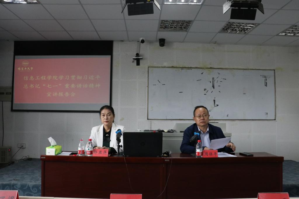10月6日下午,学校党委宣讲团分团成员、经管院思政系郭亚萍教授到信息院、史哲院宣讲总书记“七一”重要讲话。学院全体领导干部、师生党员代表听取宣讲,宣讲会由信息院党委书记周保平主持,在逸夫楼203会议室举行。