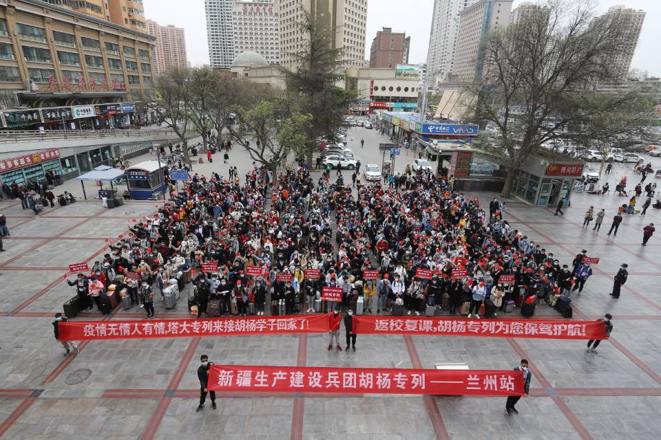 “塔大,我爱你!我们爱塔大!”……4月17日上午12时许,首趟新疆生产建设兵团胡杨专列从兰州站驶出前,塔里木大学返疆学生通过钉钉现场视频直播时说。