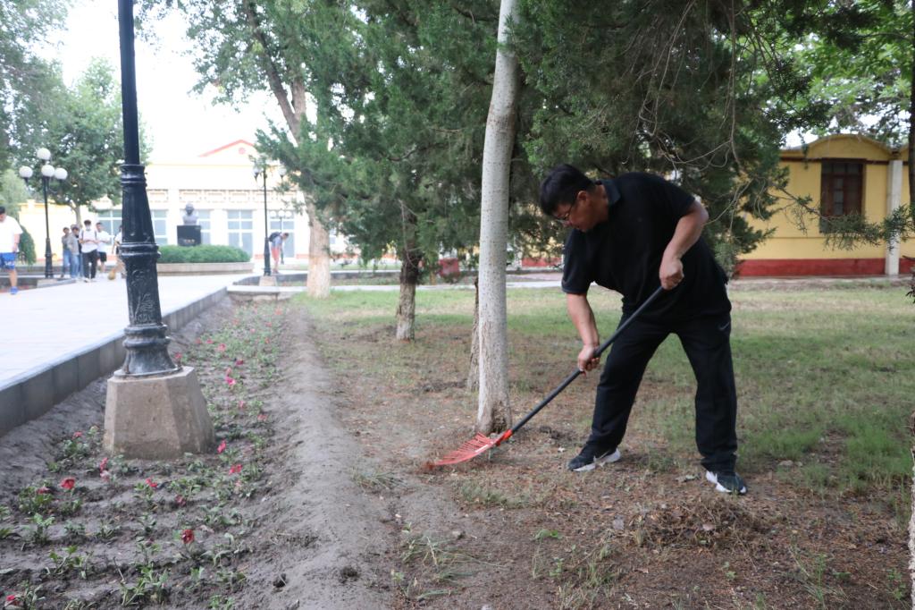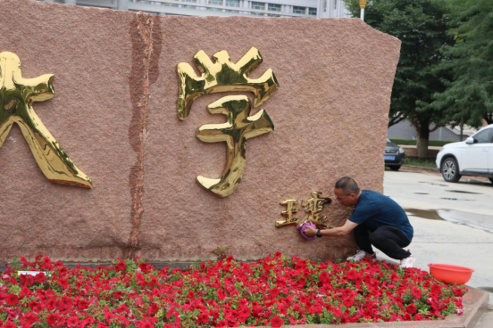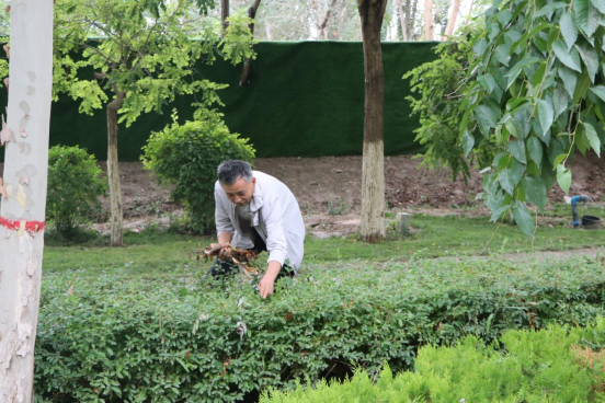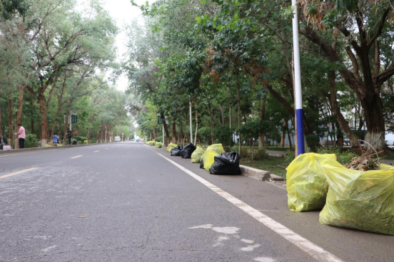 在大学路、综合楼、南大门、图书馆、办公楼、实验楼、红色文化广场及园艺实验站等处,师生们手里拿着垃圾袋、扫把、撮箕、抹布等,捡拾烟头、垃圾、饮料瓶、枯枝落叶等杂物,擦拭门、墙、栏杆等。