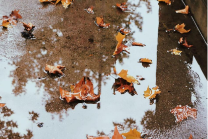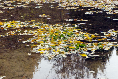 有些落在宁静的水面上