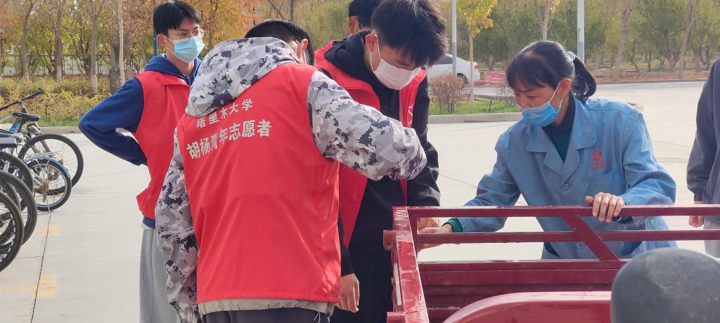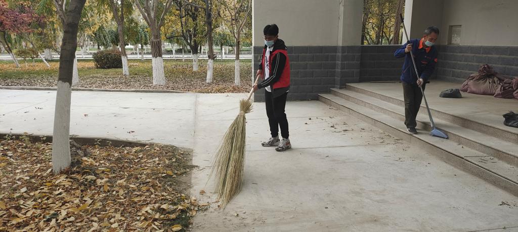 10月30日,胡杨青年志愿者协会配合后勤保障中心,开展“共创文明校园,共享文明成果”志愿服务活动。50余名志愿者和后勤保障中心工作人员,一同走进教学楼、实验楼、大学生活动中心等公共场所,联合开展创建文明城市、文明校园志愿服务活动。