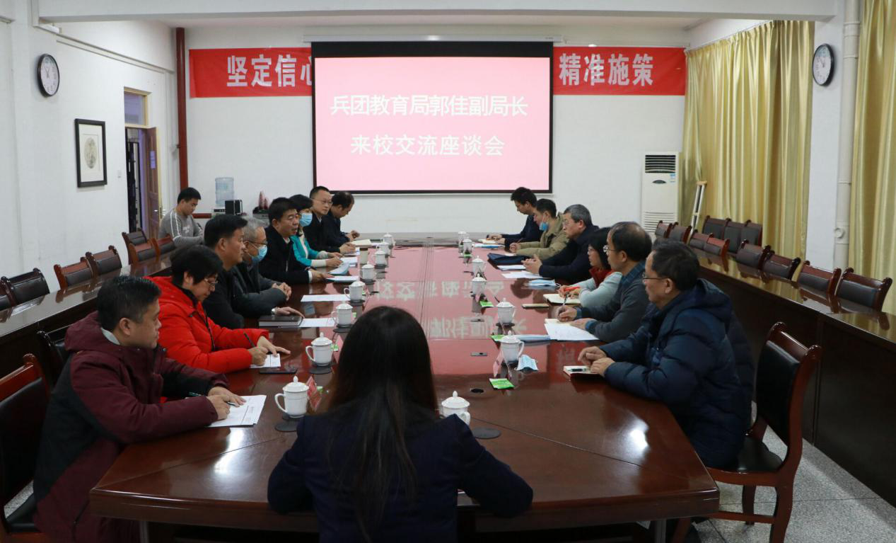 12月4日上午,兵团教育局党组成员、副局长郭佳一行来校调研并召开座谈会。党委书记赵光辉,党委副书记张爱萍,党委常委、副校长曲义勇,党委常委、组织部部长马智群,以及有关部门、学院主要领导参加座谈。座谈会由马智群主持,在行政楼317会议室举行。