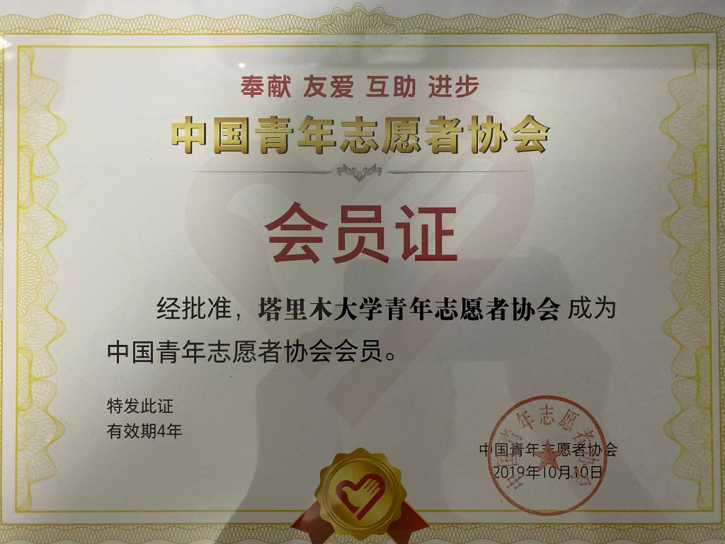 “经批准,塔里木大学青年志愿者协会成为中国青年志愿者协会会员。” 3月5日,塔里木大学青年志愿者协会收到中国青年志愿者协会颁发的会员证。
