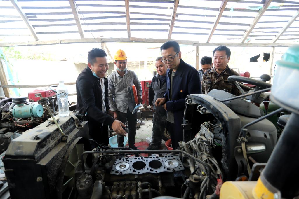 服务团队在二二五团民航新村农机示范户发放农机维修工具三套、《农机装备运用维护保养技术》实用指导书三本,并对示范户拖拉机维修与保养进行了现场维修与指导。阿不都艾则孜·阿不都艾尼说:“塔里木大学的专家来得非常及时,我的拖拉机正在进行发动机维修,正好遇到了难题,服务团解决了我的困难,非常感谢塔里木大学工作队和农机专家们!”