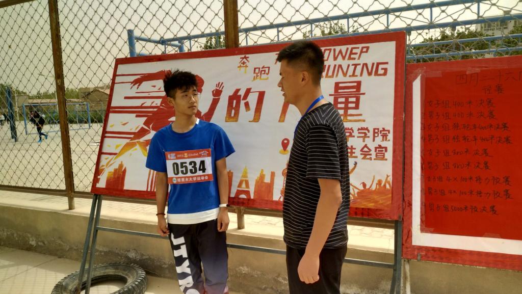 “竞技使人发现自己的不足,在比赛之中,名次是一部分,但是更重要的是,使自己在思想上有升华。”生物技术22-2班张津瑞的一番话,让记者感触颇深。“在整个训练的过程中,我学会了坚持,虽然训练的时候特别累,训练完上下楼梯的时候腿都是软的,但我还是坚持了下来。”张津瑞说,尽管他在男子400米赛场的成绩不理想,但年轻的心是相连的,不轻易言弃,跑完了全程,这也是一道完美的弧线。