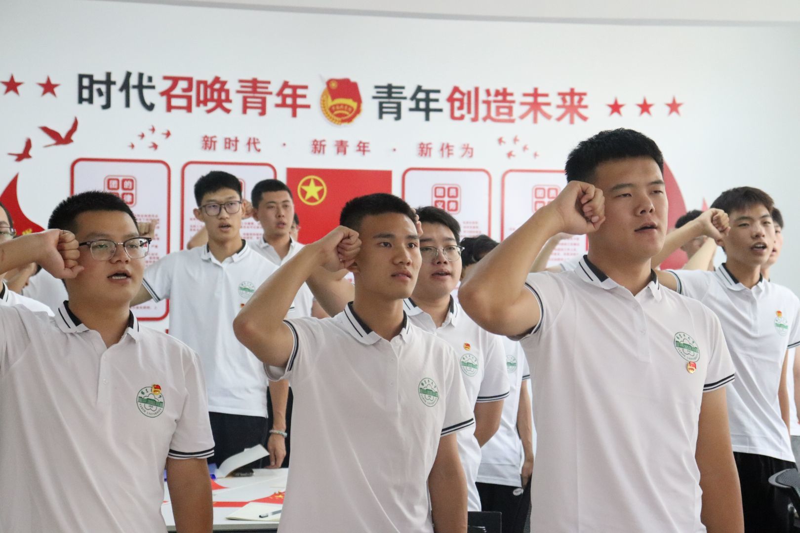 学院团委副书记潘莎莎说:“我们要坚守为党育人,为国育才的初心和使命,加强基层团组织建设,做到党旗所指就是团旗所向,党有号召,团有行动!”