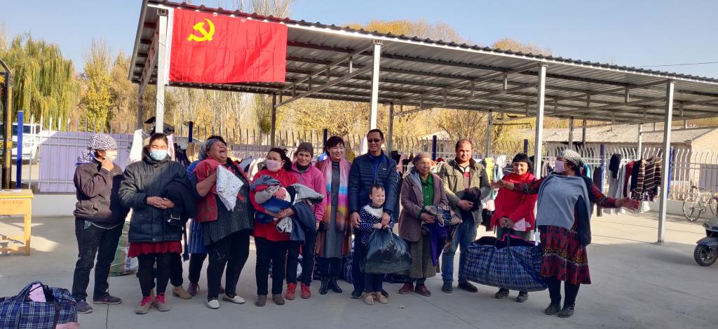 努尔比言:“一连工作队时刻挂念职工群众的冷暖,还为我们捐赠了衣物,我们非常高兴,非常喜欢,感谢塔里木大学,感谢工作队,我们现在开心的很,生活幸福的很。”