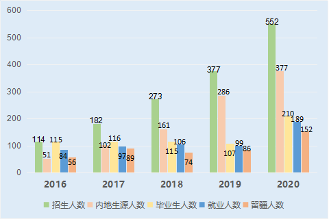 学位点招生人数增长迅速学校大力加强学位点建设,通过增量安排和存量调控,实现研究生扩招。2016年招生114人,2017年招生182人,2018年招生273人,2019年招生377人,2020年招生552人。截至2020年10月,我校有研究生导师409人,硕士研究生在校人数1070人,博士研究生在校人数27人,塔里木大学在学研究生人数达到1097人。2016年至2020年,我校共毕业硕士研究生668人,年终就业率85%以上,留疆率为70%以上。