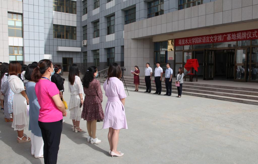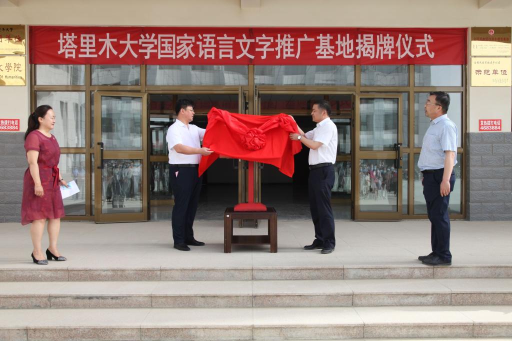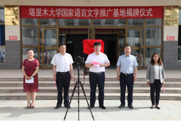 6月4日上午,塔里木大学国家语言文字推广基地揭牌仪式在新文科楼大厅举行。党委副书记、校长张传辉,党委常委、副校长石长青,人文学院党委书记张理,院长肖涛,副院长秀梅出席。石长青主持仪式。人文院师生代表参加。