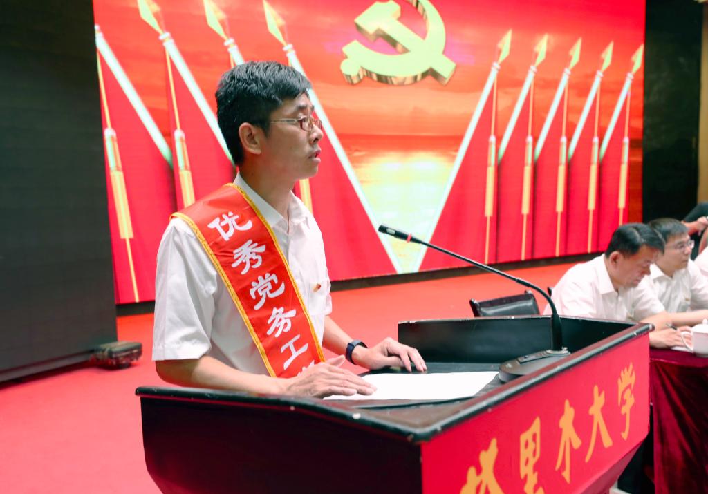 优秀党务工作者代表经管院法律系党总支部书记罗云方同志发言,分享了自己从事党务工作的做法和体会:一是加强政治理论学习,提升政治理论水平;二是突出示范引领,积极发挥“头雁效应”;三是深入实施“胡杨先锋工程”,积极探索师生共建机制。他表示,优秀党务工作者这一荣誉称号既是一种鼓励,更是一种鞭策。成绩属于过去,续写明天的辉煌才是目标与追求,自己会以今天的表彰为新的起点,继续以全新面貌推进党务各项工作,努力为学校改革发展作出新的更大贡献。