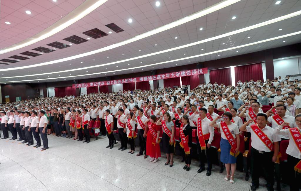 党委书记赵光辉同志,党委副书记、校长张传辉同志,党委副书记、纪委书记单洪山同志,离退休老党员、老干部代表,各基层党委总支(书记)出席大会。全体处级领导干部、全体师生党员等1000余人参加大会。张传辉同志主持大会。