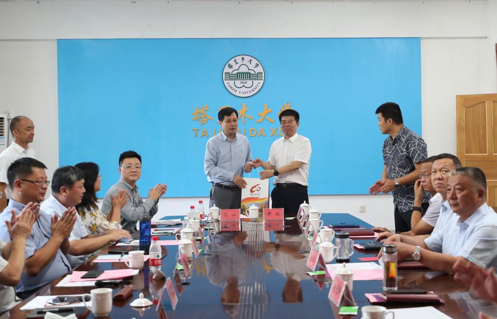 张传辉详细介绍了塔里木大学基本情况和60年来的发展成就。他指出,塔里木大学是一所具有光荣革命传统的学校,是党中央部署在南疆的一颗棋眼,在维护新疆社会稳定发挥特殊作用,希望依托南京理工大学突出优势,发展工科专业,为实现新疆工作总目标作出新的更大贡献。