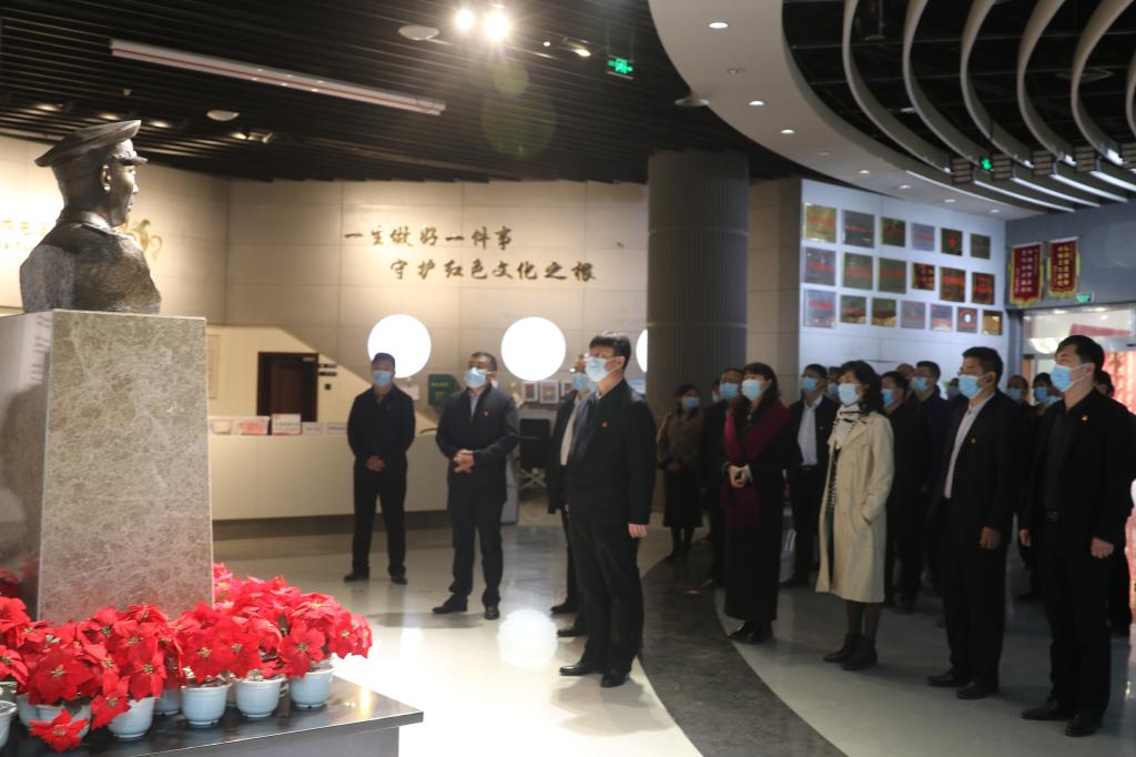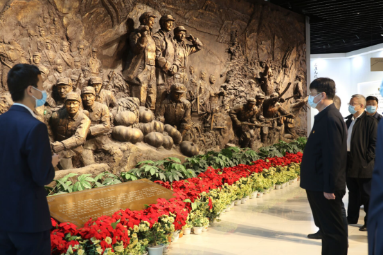 下午5时30分,张传辉一行进入三五九屯垦纪念馆,先后参观了“艰苦创业,叩醒荒原”、“农林牧业,迅速崛起”、“兴修水利,护农安民”三个主题展览厅,共同了学习三五九旅的优良作风和光荣传统,重温屯垦戍边工作的光辉历程。通过一幅幅感人至深的历史照片和一件件饱含沧桑的历史实物,使大家全方位了解了三五九旅的组织规模和职责转变全过程,对新时代提升党的组织建设有了更加深刻的认识。