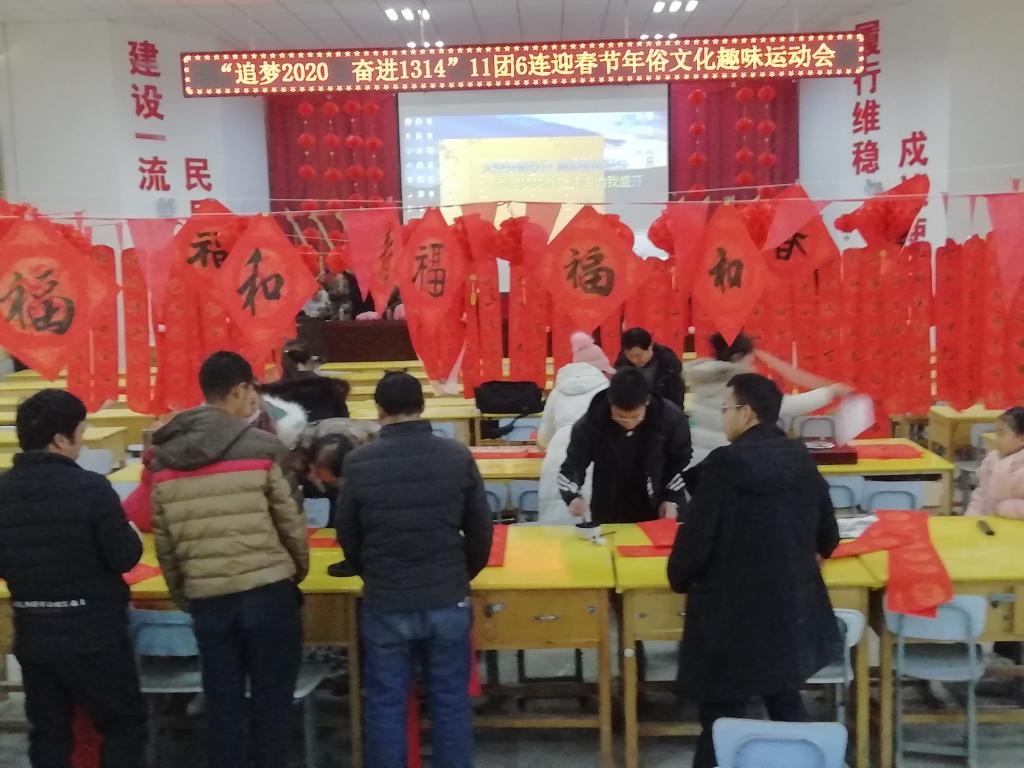 辞旧迎新,岁末年关。为喜迎2020年春节的到来,十一团六连于1月13日全天组织了丰富多彩的文化体育活动,为广大职工群众营造了新年的喜庆氛围,也给寒冷的冬季带来了热闹的节日祝福。本次迎新春活动分为文化和体育活动两部分分别开展。