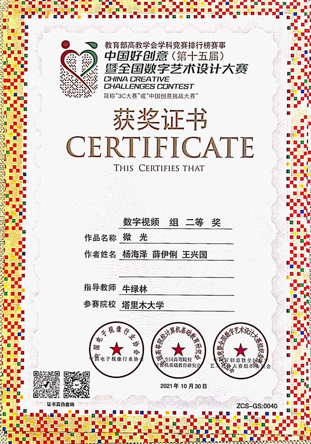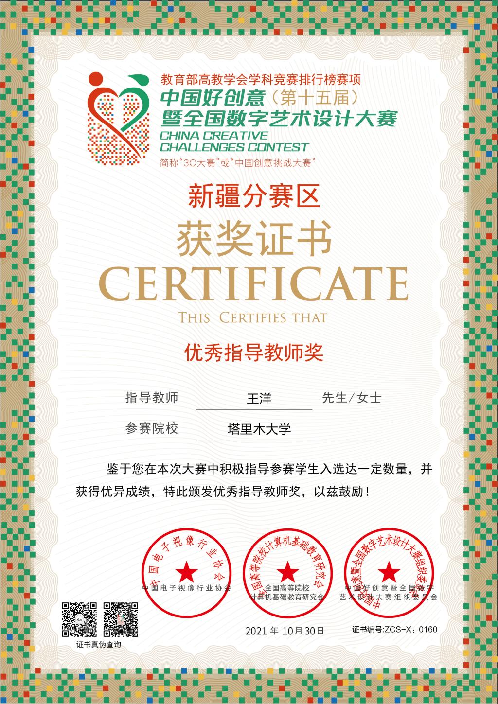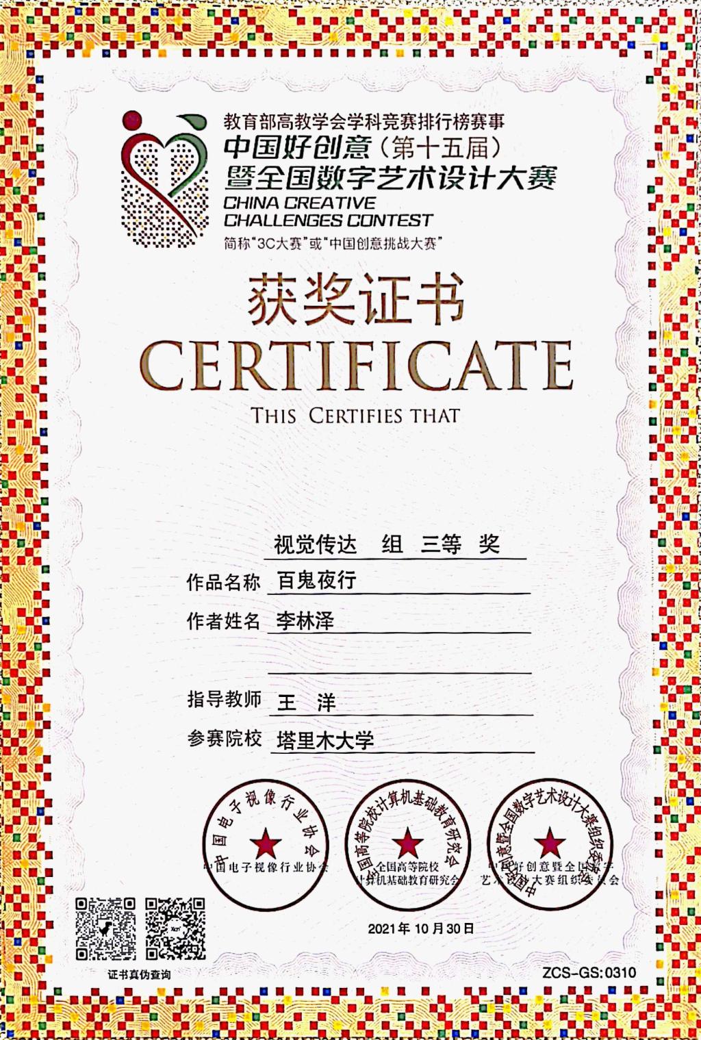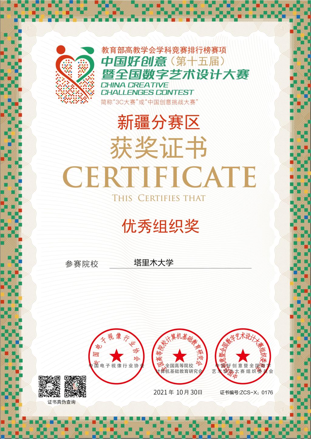 12月2日,第15届中国好创意大赛通过线上形式举办,我校人文学院艺术设计学专业、服装与服饰设计专业、广播电视学专业学生的作品,分获国家级二等奖1项、三等奖2项;新疆赛区二等奖7项、三等奖8项、优秀奖2个。塔里木大学获得新疆赛区优秀组织奖。赵会、王洋、刘鹏展三位老师被评为“优秀指导教师”。