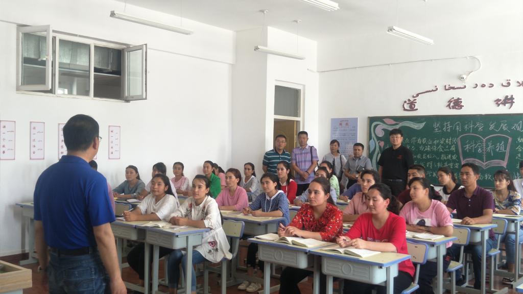 副县长艾尼瓦尔·艾买提向张传辉一行介绍了围绕脱贫攻坚创办农牧民技能培训基地的现实意义,该县计划每三年对全县青壮年农村劳动力进行集中短期种养殖、食品加工、服装设计等技能轮训。同时,对塔里木大学首批支教的祁成年教授、张锐教授的辛勤付出表示感谢!他指出,和田县高度重视与塔里木大学的合作,长期以来双方围绕科技挂职、科技服务等有了很好的合作基础。希望塔里木大学加强师资、学生实习等方面对培训基地的支持和帮助,促进和田县农民教育事业的发展。