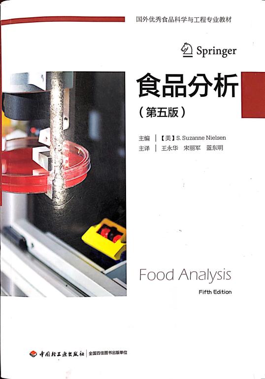 《食品分析(第五版)》、《食品分析实验指导(第三版)》,由华南理工大学王永华教授、我校宋丽军副教授、华南理工大学蓝东明副研究员主译,塔里木大学侯旭杰教授、张丽、白冰瑶、夷娜、李雅雯参译,中国工程院孙宝国院士作序。上述两本书分别对食品分析相关法规标准、数据处理,食品成分的分析,食品物理化学特性分析,食品有害物分析,光谱、质谱及色谱分析法等进行了详细阐述。在翻译过程中,译者始终遵循“尊重原文、语言规范、术语统一”的原则,旨在将国际食品分析领域的新知识、新技术、新应用传递给广大读者。