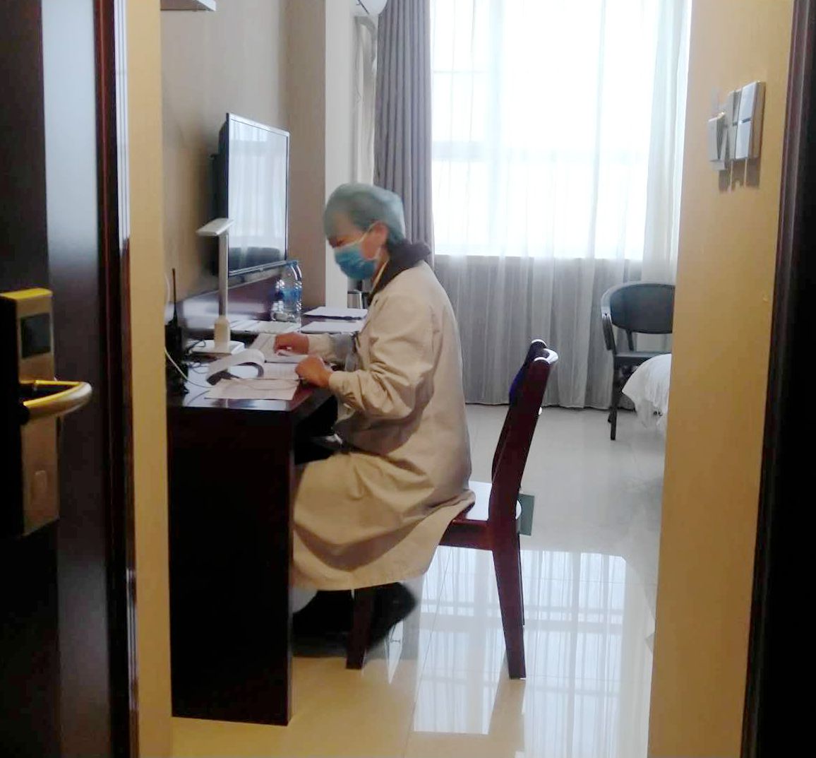 马学强主要负责隔离人员医学检查、医学观察期间的异常情况、指导消毒工作,初步判断、筛查新入住隔离人员的一般健康状况,登记从哪里来的,到过疫区没有,有没有感冒发热等异常情况。