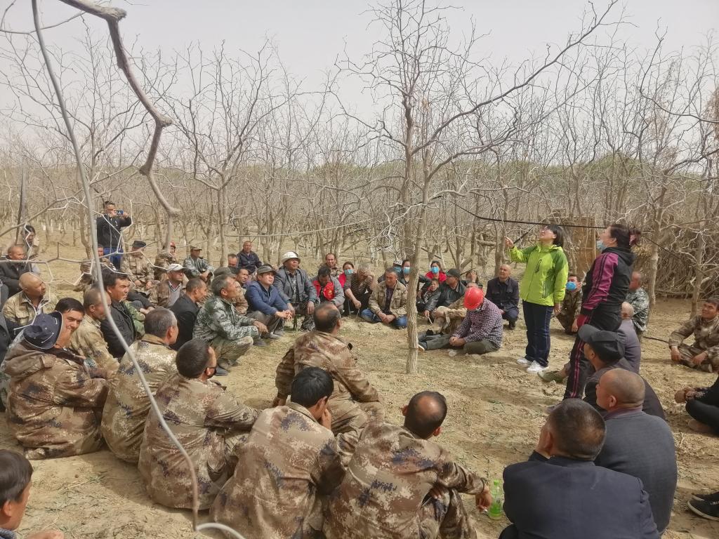 4月4日,依托我校吴翠云教授主持的“特色林果提质增效科技示范基地建设”项目,林果业科技特派员服务团队成员林敏娟、冯一峰前往皮山农场4连开展技术培训。