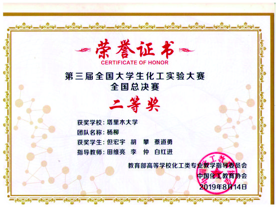 2019年我校学生获得2019“东方仿真-欧倍尔”杯第三届全国大学生化工实验大赛二等奖
