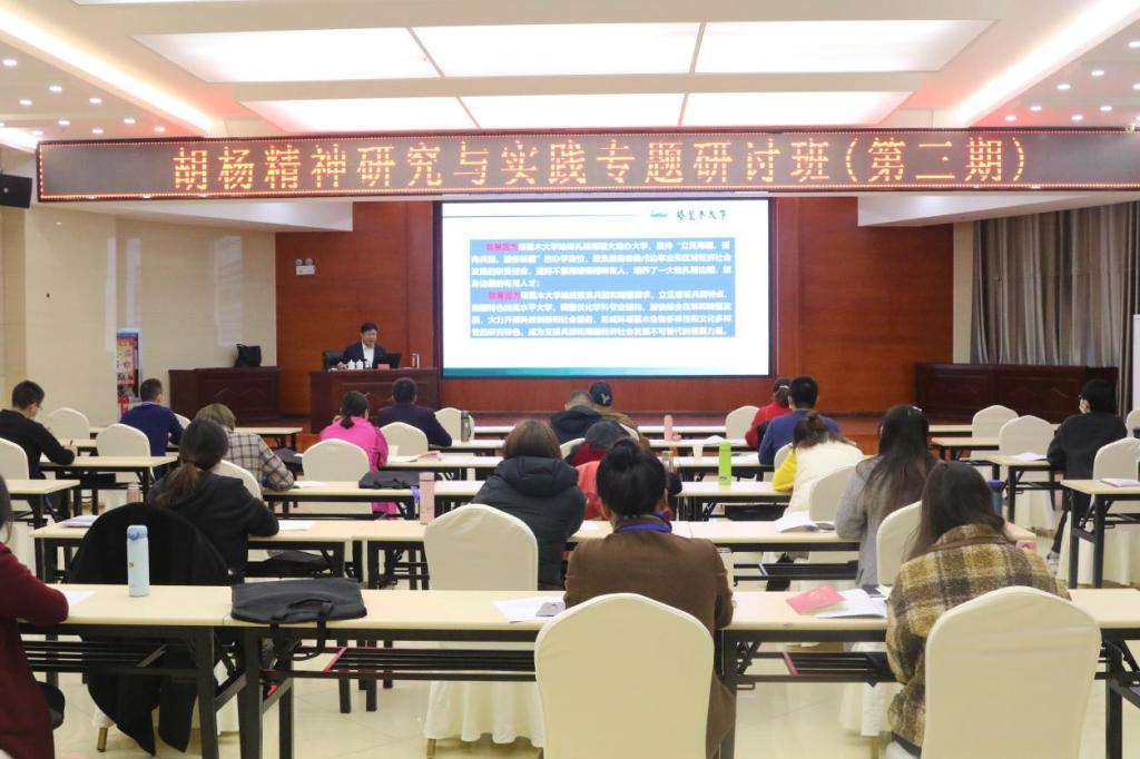 11月2日上午,党委副书记、校长张传辉为胡杨精神研究与实践专题研讨班,作了“用胡杨精神育人、为兴疆固边服务”的专题讲座。讲座在胡杨干部培训中心二楼报告厅举行。