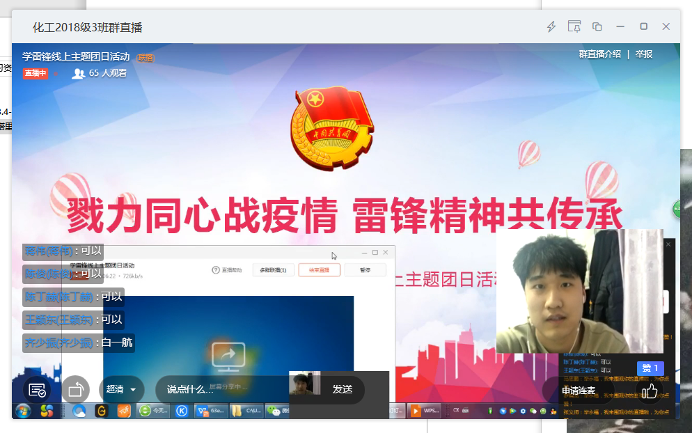 通过QQ、钉钉等网络平台以演讲、诵读、视频等多种形式开展线上团日活动,学习《习近平总书记关切事|闪耀精神之光—写在学雷锋纪念日之际》《雷锋,永恒的精神坐标》《今天,谁是雷锋》等文章。