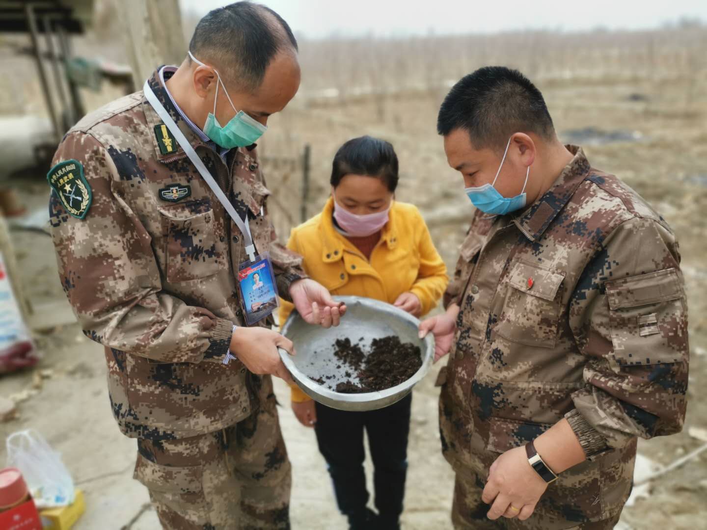 十一团六连“访惠聚”工作队坚持“一手抓防疫、一手抓春耕”,科技服务助力职工群众增收。3月7日,工作队队长秦泽洪带领科技特派员团队成员,来到六连职工彭文娟家的枣园,查看去年建立的庭院养殖示范点蚯蚓养殖的长势情况。