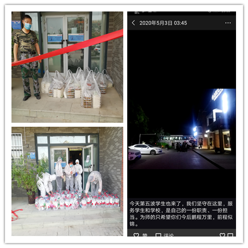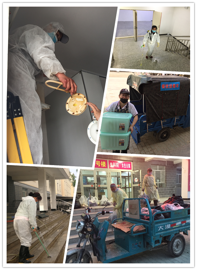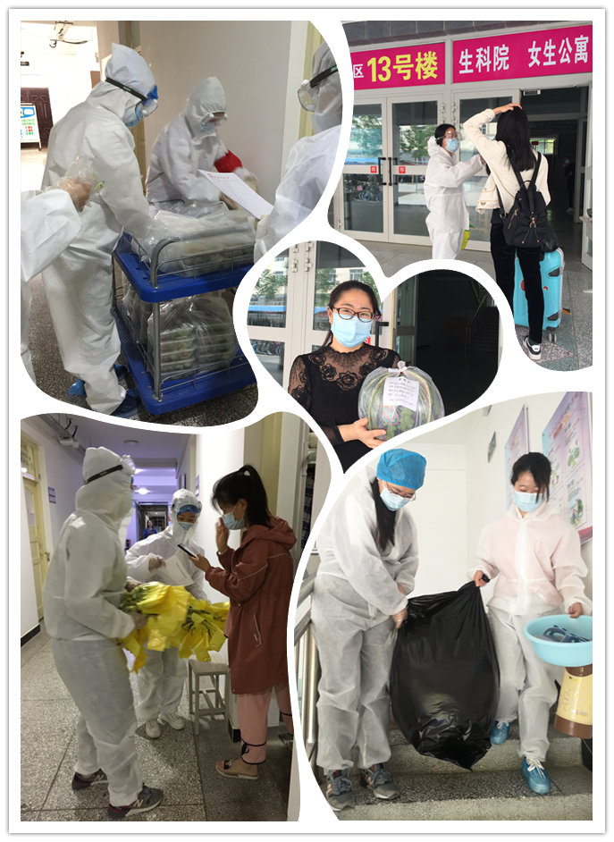 连日来,教师学生志愿者、和工作人员都纷纷投入到测温、消杀、送餐、送快递、保洁、维修配发大礼包、搬运物品等工作中。正是因为这些平凡工作者的不懈努力和默默奉献,每个学生才能平安健康的生活。