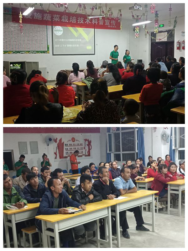 活动期间,实践团队在村民活动中心为村民讲解了设施蔬菜高效栽培技术,同时针对职工在种植过程中遇到的难题提供了可行性的解决方案,这次的宣传活动受到了干部职工的热烈欢迎,讲解过程中干部职工们认真学习,深入互动。