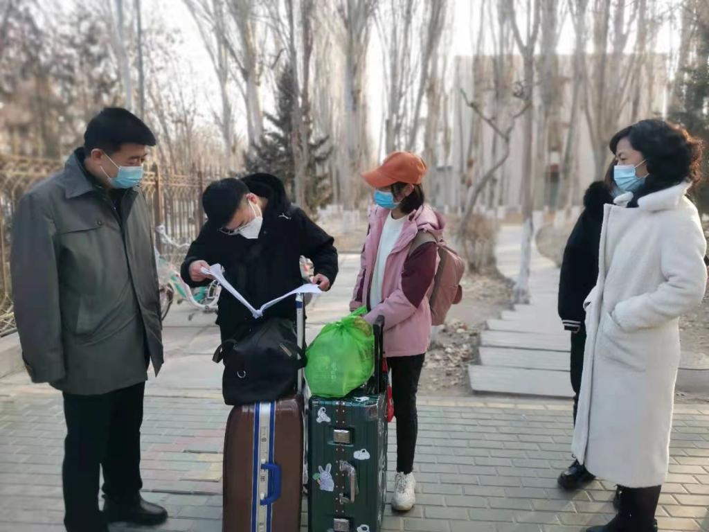 赵光辉叮嘱同学们回家途中最重要的就是安全,一定要做好个人防护工作,注意身体和财产安全,保护好贵重物品,到家后及时向学校、辅导员和班主任报平安。详细询问离校学生的行程安排,关注学生是否前往疫情高风险地区、是否独自回家、家人是否知晓等。