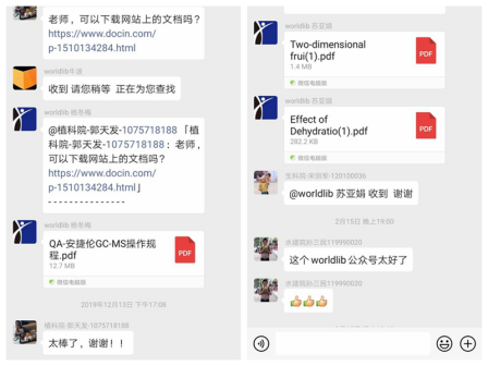 图书馆为了给广大师生提供文献传递服务,解答资源使用过程中遇到的问题,图书馆专门建立的“塔里木大学科研文献服务”微信群,管理员全天在线。