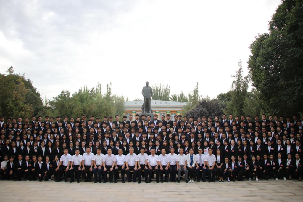 会前,校领导在王震将军铜像前和全体与会代表合影留念。