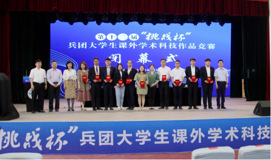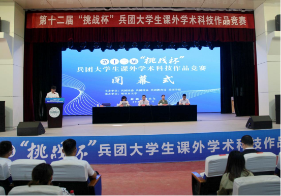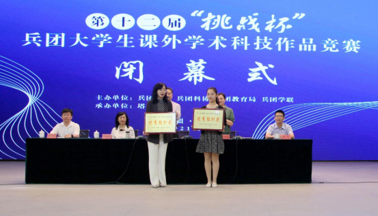 闭幕式上,大赛组委会宣布了参赛作品获奖情况。经过项目展示、现场答辩等环节,最终评选出自然科学类、哲学社会类、科技发明类一等奖作品10件、二等奖作品12件、三等奖作品16件。石河子大学、塔里木大学荣获优秀组织奖。