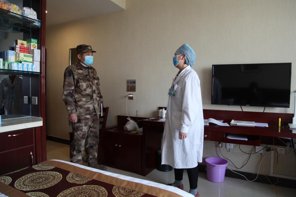在集中隔离点,石长青详细了解客房保洁、消毒、供餐等防控工作情况,对隔离点工作人员的辛勤付出表示感谢。