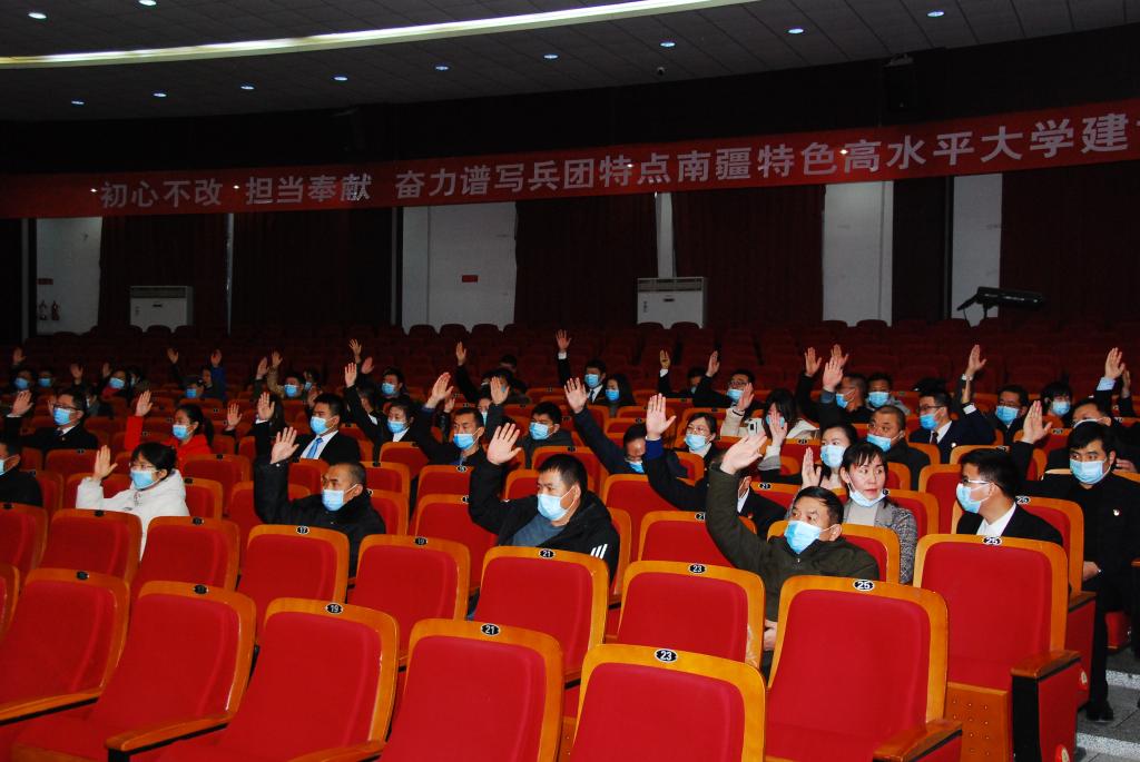 大会在庄严的奏唱国歌中拉开序幕。张伟信向大会报告中共塔里木大学机关党员大会筹备工作情况,对新一届委员会候选人预备人选产生情况进行了说明。大会表决通过了中共塔里木大学机关委员会委员候选人名单,中共塔里木大学机关党员大会选举办法,总监票人、监票人、指定计票人名单,选举产生了新一届机关党委委员会委员。