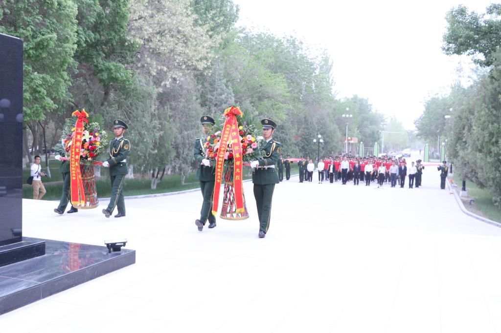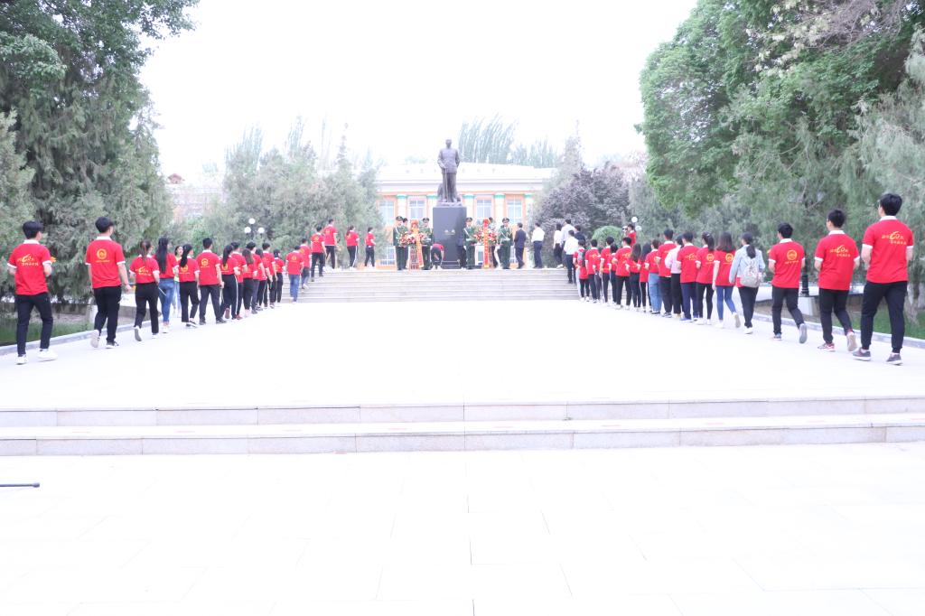 最后,参与活动的师生依次向王震将军铜像献花,缓步绕行瞻仰革命先烈的光辉形象。