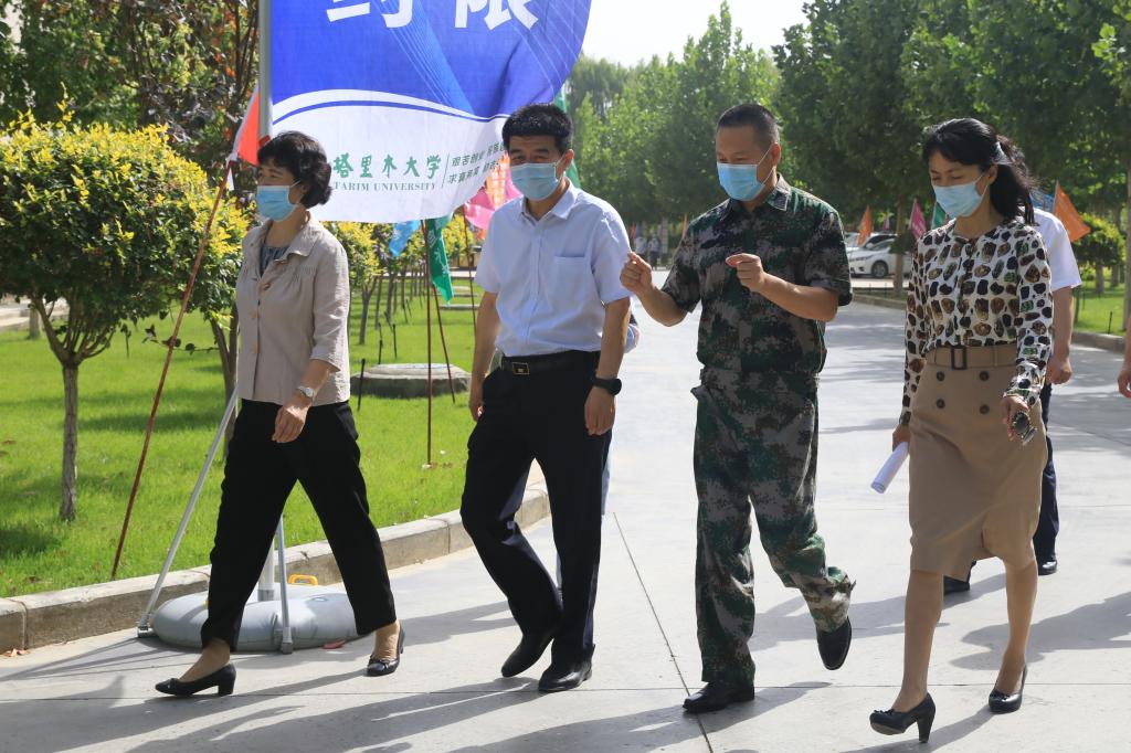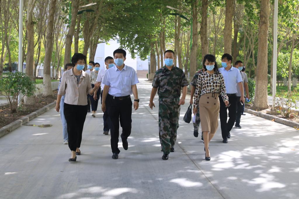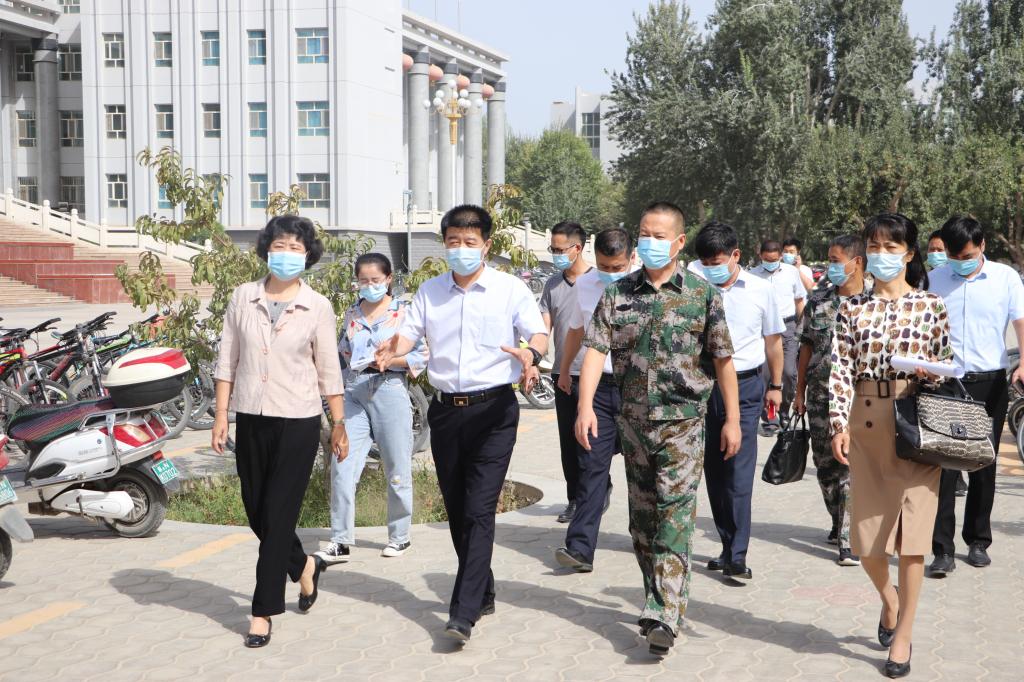 9月8日下午,师市党委书记、政委卢跃东,师市党委常委、副政委、宣传部部长李文彬,副师长、政府党组成员、副市长宋旭日一行8人,来校检查全国文明城市创建工作开展情况。我校党委书记赵光辉,党委副书记张爱萍,党委常委、副校长石长青,以及相关部门领导陪同。