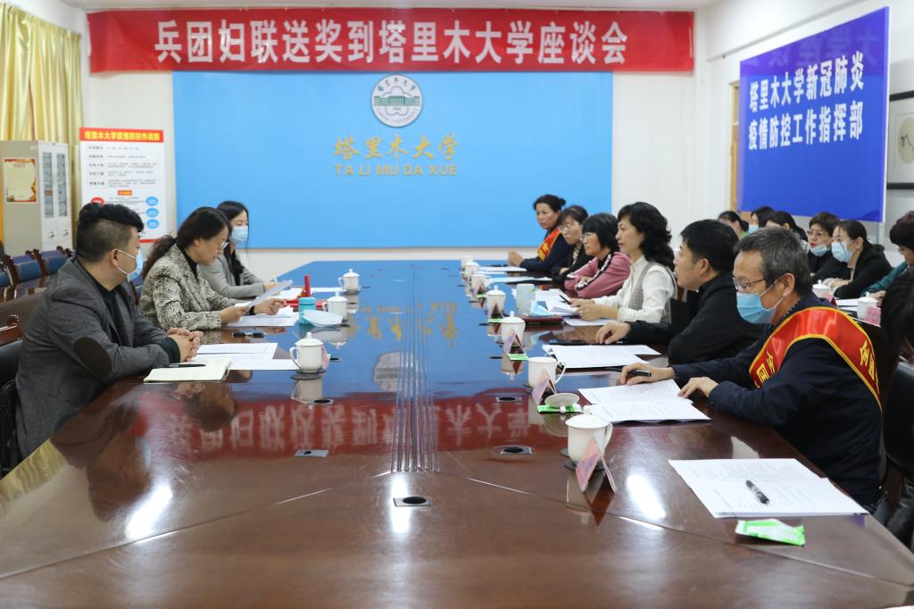 3月29日下午,兵团妇联党组成员、副主席胡波为我校荣获“全国巾帼建功先进集体”和“全国三八红旗手”的单位和个人送奖,并参加座谈会。党委副书记张爱萍出席,兵团妇联组织和宣传部干部张莉,兵团妇联家庭和儿童工作部干部田军政列席会议。学校相关部门、学院主要负责同志参加。会议由工会主席陈忠林主持,在行政楼317会议室召开。