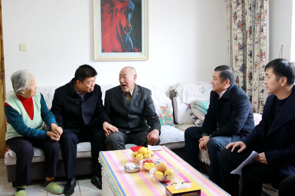 在2020年春节来临之际,为加强党内激励关怀帮扶,发扬拥军优属的优良传统,将党和政府的关爱及时传递到退役老战士、现役军人、伤残军人及家属的心坎上,让他们度过一个喜庆祥和的新春佳节,1月20日上午,党委书记赵光辉,党委常委、副校长石长青一行,深入走访慰问军人军属家庭,为他们送上节日的问候和新春的祝福。党校办、人事处、人武部、宣传部有关部门领导陪同。