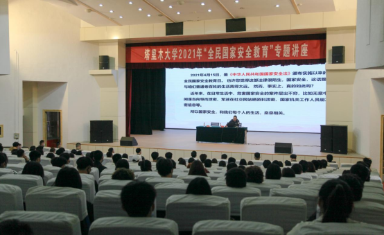 15日下午,第一师阿拉尔市公安局政治安全保卫支队任飞龙警官受邀为全校作2021年全民国家安全教育专题讲座,机关部门、学院负责同志,及全校300余名师生聆听了讲座,讲座由保卫部部长朱夺宝主持,在大学生活动中心报告厅举行。