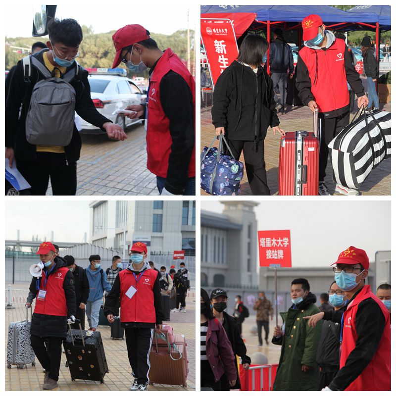 10月6日至9日,塔里木大学开展2020级迎新工作,在火车站、飞机场分别设立了迎新站点。身穿红马甲的志愿者,坚守在出站口、信息登记处、接待处引导新生们坐车并测体温、接待学生家长、为新生们贴行李贴、检查新生绿码。志愿者们在迎新站点各个角落穿梭着,在接待新生及家长的同时,还在为他们介绍学校和注意事项。4天时间,志愿者累计服务6000余名新生,他们用饱满的热情,服务着每一位新生。
