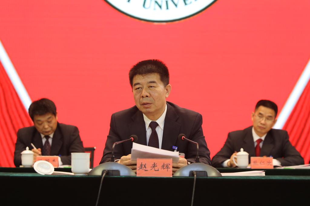 党委书记赵光辉主持会议。党委副书记、校长张爱萍作学校工作报告。党委副书记、纪委书记单洪山,党委常委、副校长曲义勇、赵峰华、于军,大会主席团成员出席。全体正式代表、列席人员、特邀人员参加。大会在大学生活动中心举行。