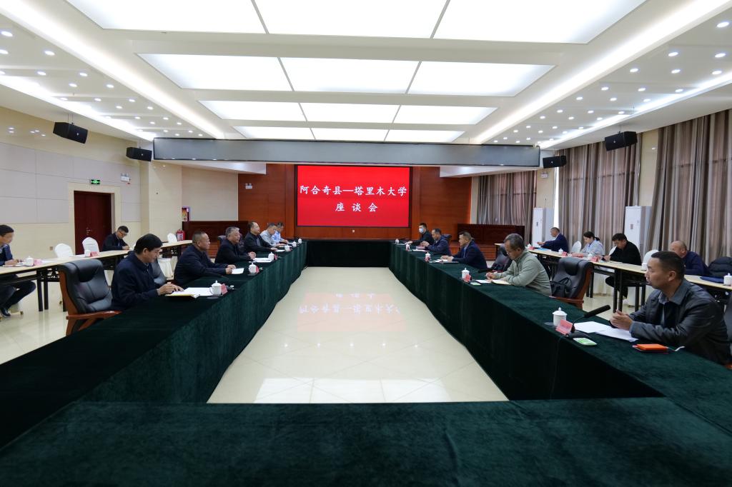 双方围绕如何推进阿合奇县畜牧业、林果业高质量发展进行深入探讨。会前,大家共同观看了塔里木大学宣传片。