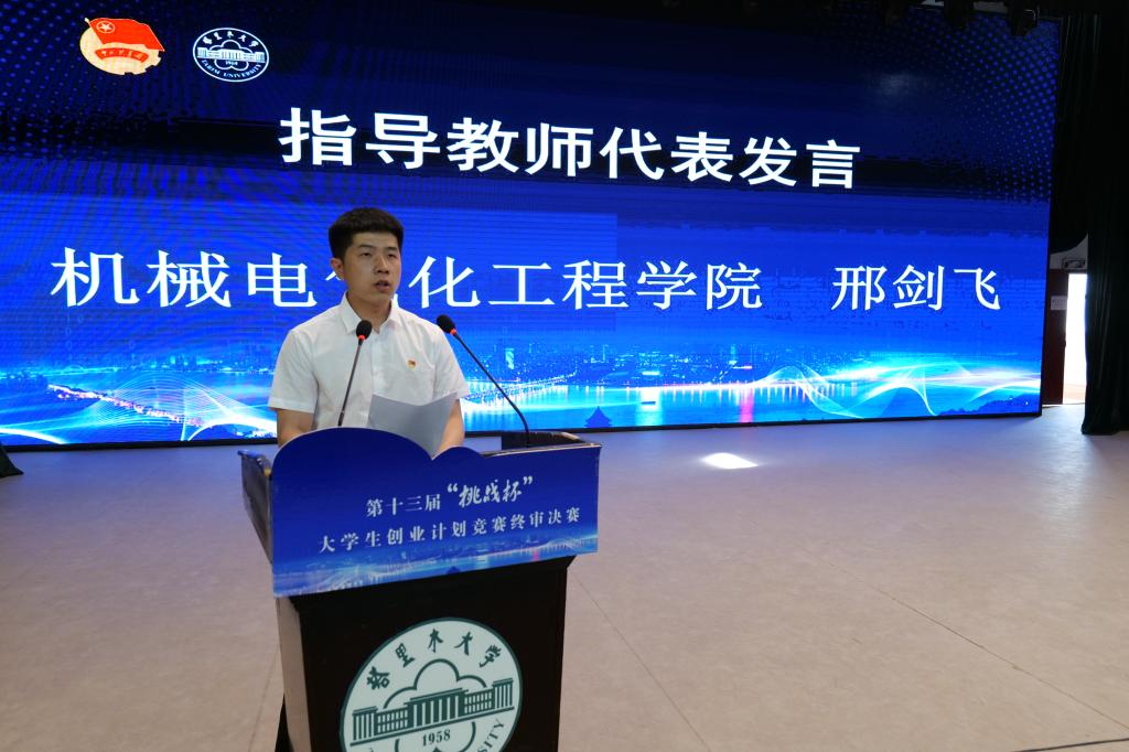 指导教师代表、机械电气化工程学院邢剑飞分享了首次带队并闯入决赛的欣喜、收获和体会。表示要通过“挑战杯”平台把学校优势特色资源与科研发展方向有机结合起来,与大学生未来成长发展紧密结合起来,坚定理想信念,永攀科学高峰,将科创之花,开在南疆大地上,让智慧之果,结出富民兴疆的甜蜜果。