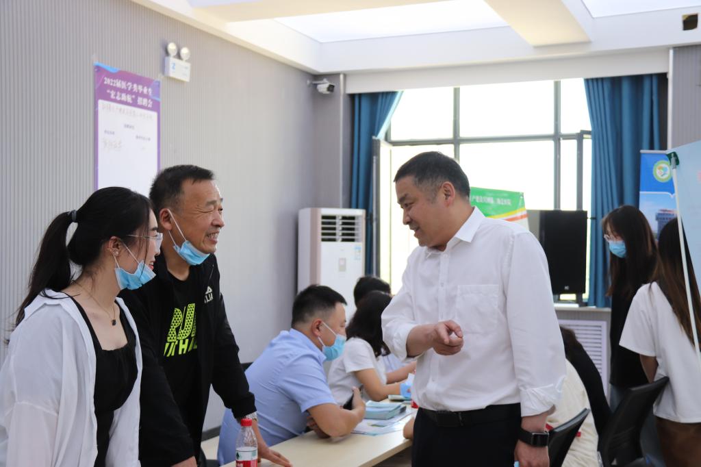 5月18日,医学院在医科楼报告厅举办2022届毕业生“宏志助航”专场招聘会。党委常委、副校长,医学院党委书记石长青,深入招聘会现场调研指导工作。