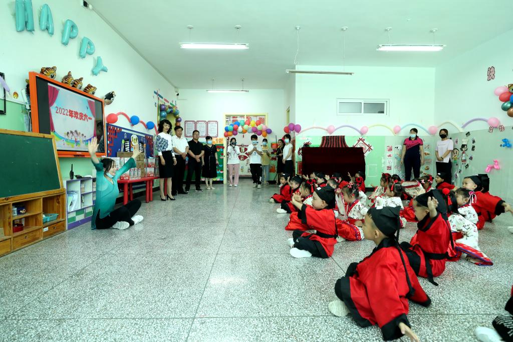 校领导来到幼儿园各班级、各教室、活动场所等处,观看了小朋友们的精彩演出,与孩子们亲切交谈,祝小朋友们学习进步、快乐生活、茁壮成长。