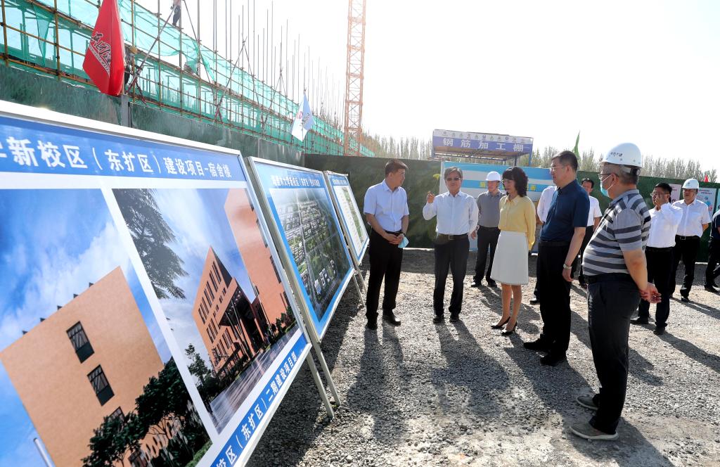 张文全、刘见明先后来到在建体育馆、南疆现代农业先进技术研究院、新校区(东扩区)施工现场、校园安保值班值守点,同学校领导、承建单位负责人、值班人员等亲切交谈,深入了解校园基础条件建设、人才培养、科研及社会服务、校园安全稳定、网络安全、心理教育等相关工作开展情况。