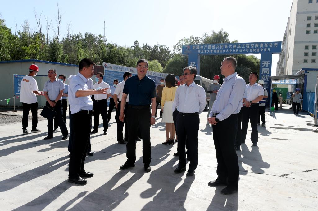 兵团党委常委、一师党委书记、政委刘新建,一师党委副书记、师长李江,塔里木大学党委书记赵光辉,党委副书记、校长张爱萍,党委常委、副校长曲义勇、于军、石长青等陪同。(文/摄:赵澳 胡婧)